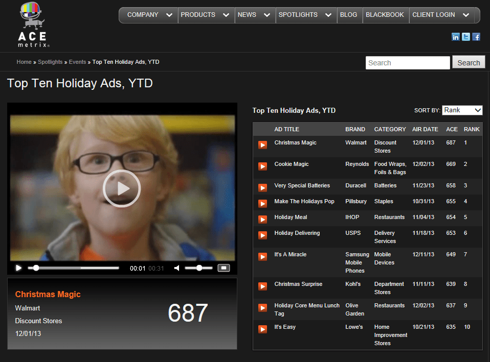 - http://www.acemetrix.com/spotlights/events/top-ten-holiday-ads-ytd/